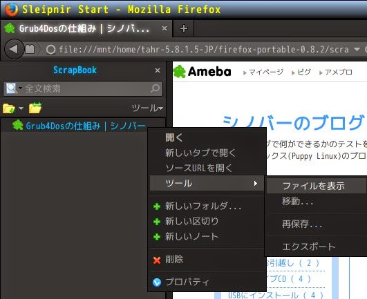 アドオンのscrapbookで不都合があり 解決できればと思い質問します